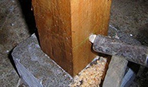 薬剤の浸透効果を高めるために木栓を穴に打ち込みます(木栓処理)。これにより、処理後の見た目もよくなります。