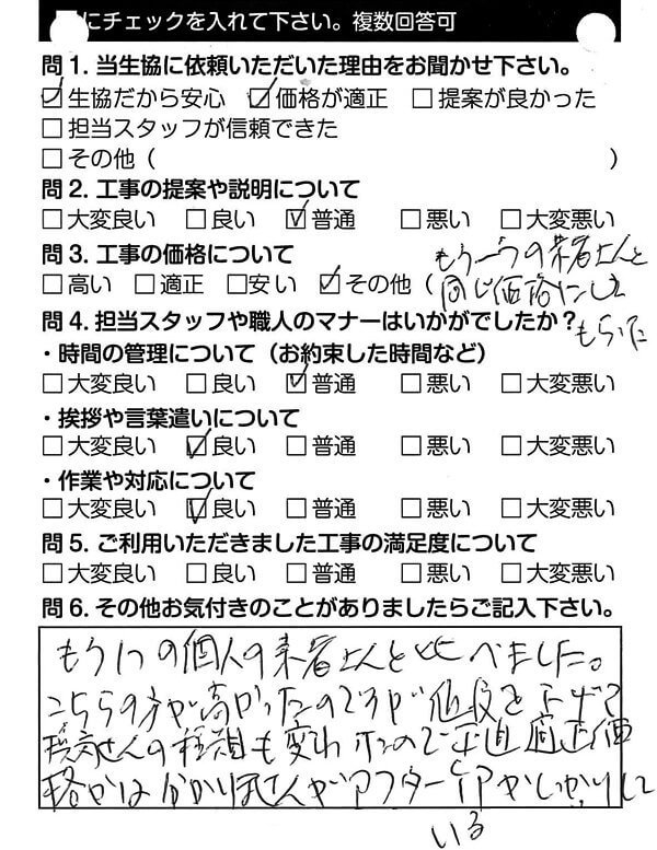 こちらの方が高かったのですが、値段を下げて換気扇の種類も変わったので正直適正価格かは分かりませんがアフターケアがしっかりしている。