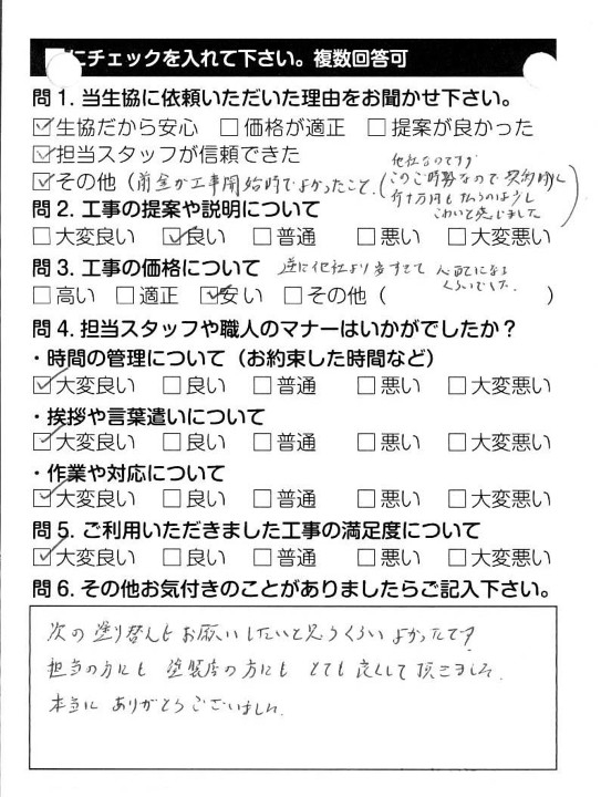 次の塗り替えもお願いしたいと思うくらいよかったです。